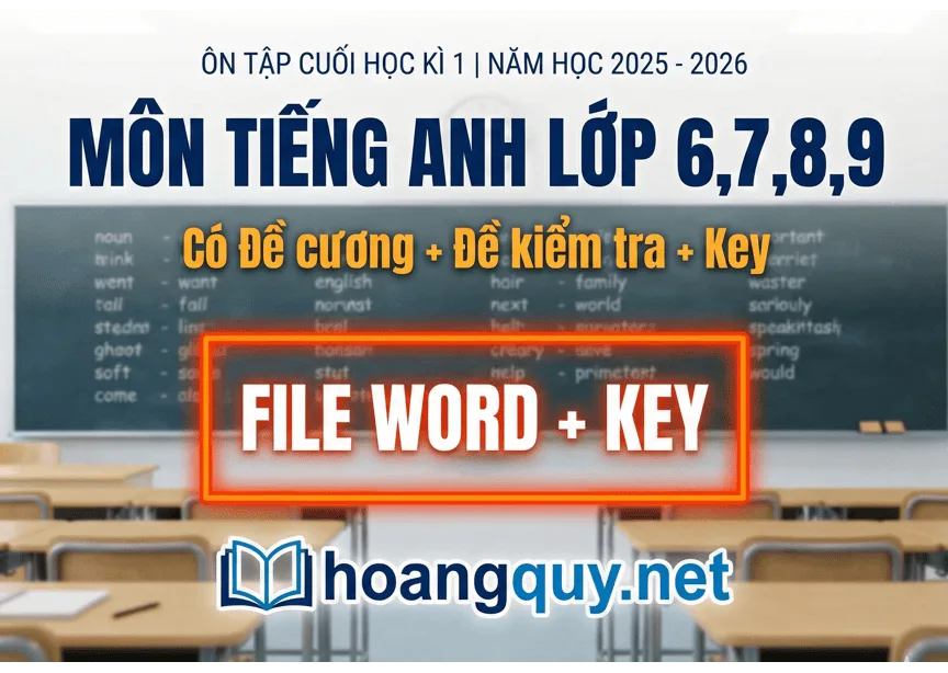 Đề Cương Ôn Tập & Đề Kiểm Tra Cuối Học Kì 1 Tiếng Anh 6, 7, 8, 9 Năm Học 2025-2026 (Bản Word, Có Đáp Án)